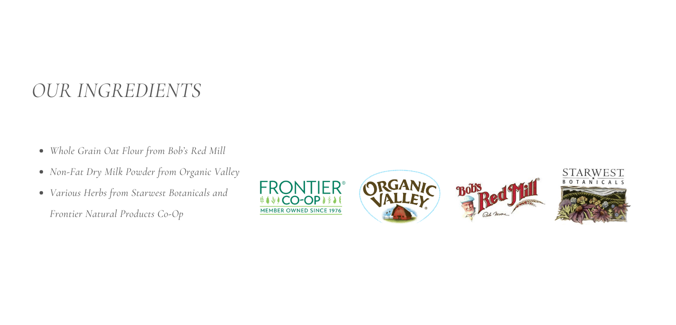 Avena Sativa Kernel Flour、Nonfat Dry Milk、Magnesium Carbonate.